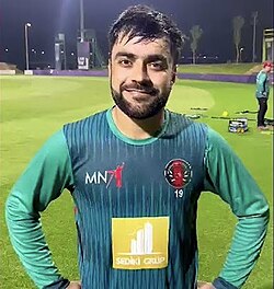 Rashid Khan Arman (Pashto: راشد خان ارمان; born 20 September 1998) is an Afghan international cricketer and captain of the Afghanistan national team in the T20I format.[1] In franchise leagues, he plays for Gujarat Titans in the Indian Premier League (IPL), Adelaide Strikers in Australia’s Big Bash League (BBL), Lahore Qalandars in the Pakistan Super League (PSL), Band-e-Amir Dragons in Afghanistan’s Shpageeza Cricket League and MI New York in Major League Cricket (MLC). He bowls right-arm leg spin and is an aggressive right-handed batsman.