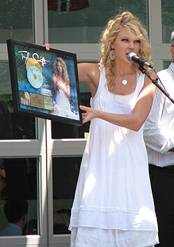 With Taylor Swift, she became the first female country music artist to write or co-write every track on a platinum-certified debut album. The album was promoted by a six-month radio tour and Swift’s opening for other country artists, including Rascal Flatts in 2006, and George Strait, Brad Paisley, and Tim McGraw and Faith Hill in 2007. She opened for Rascal Flatts again in 2008, when she dated the singer Joe Jonas.